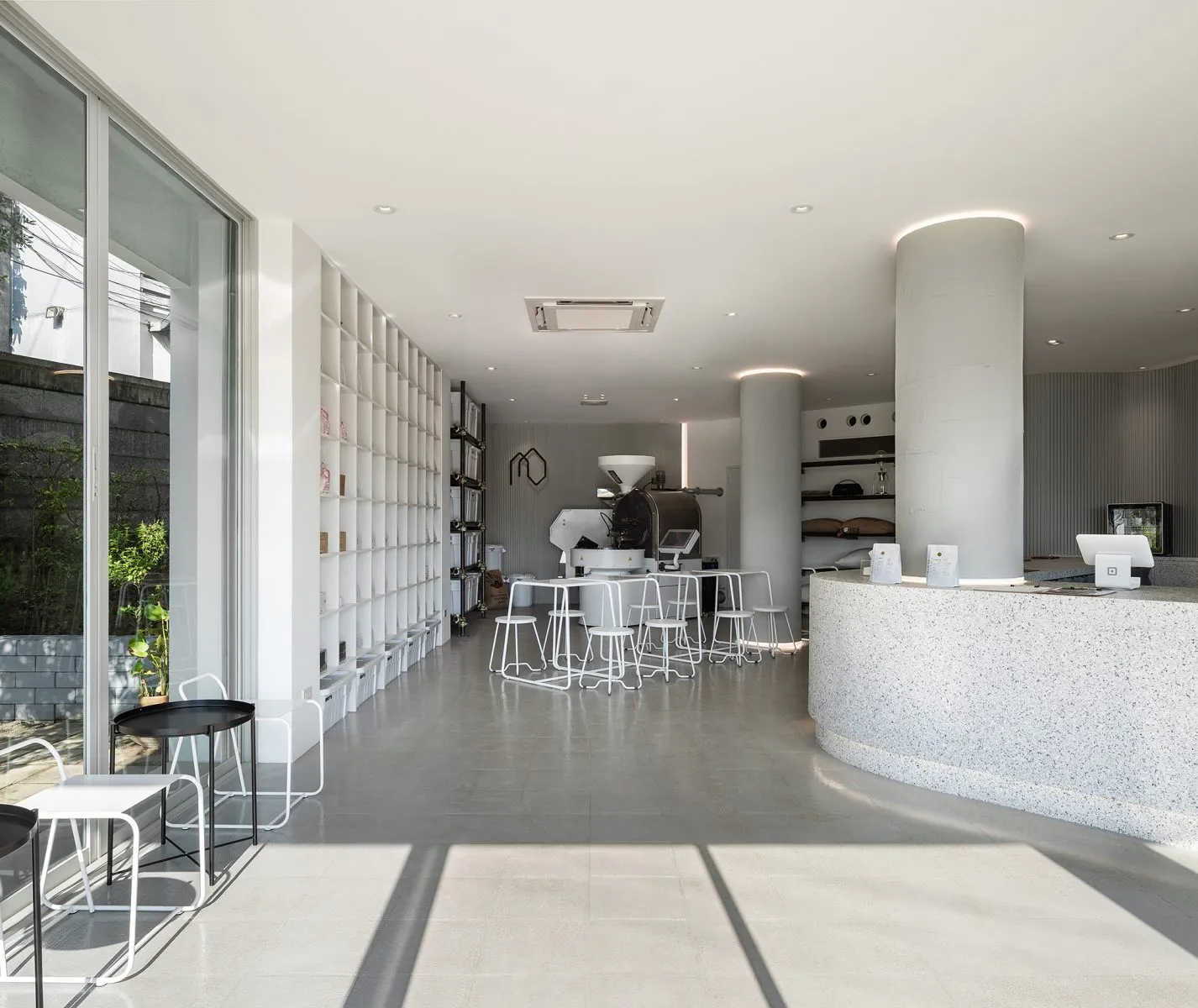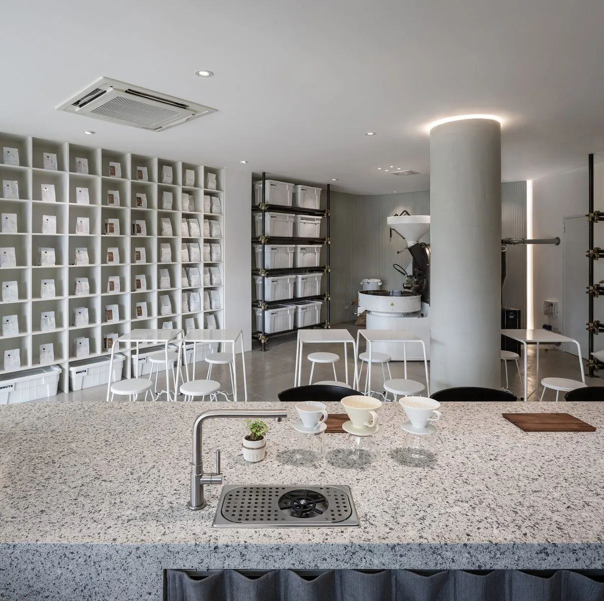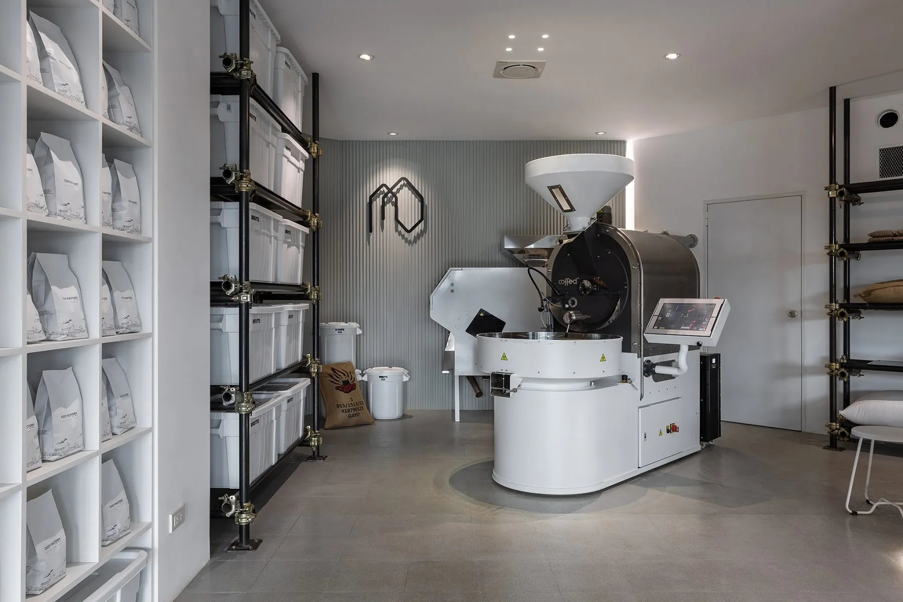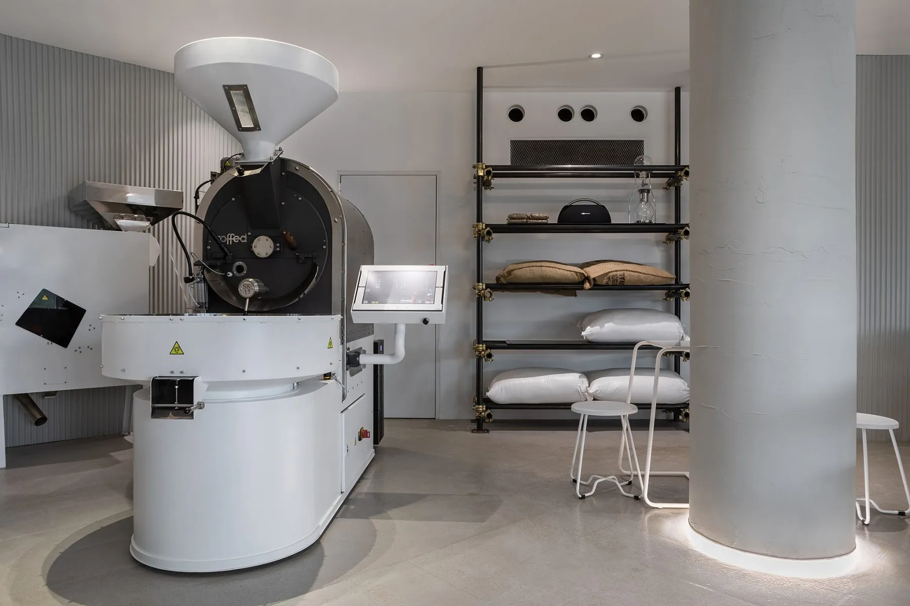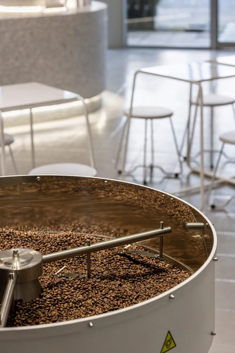 · the roastery zone, anchored by a 15-kg coffee roasting machine.