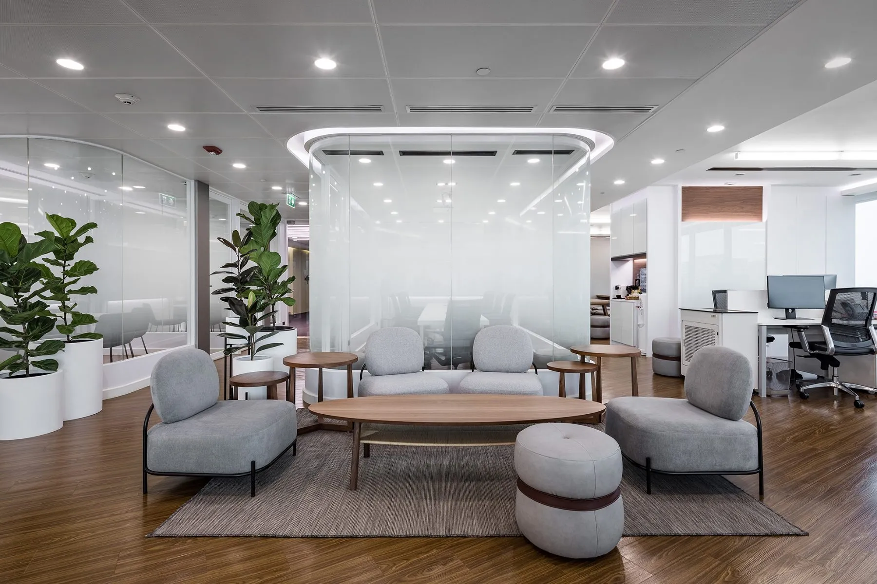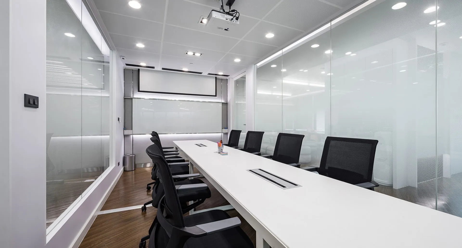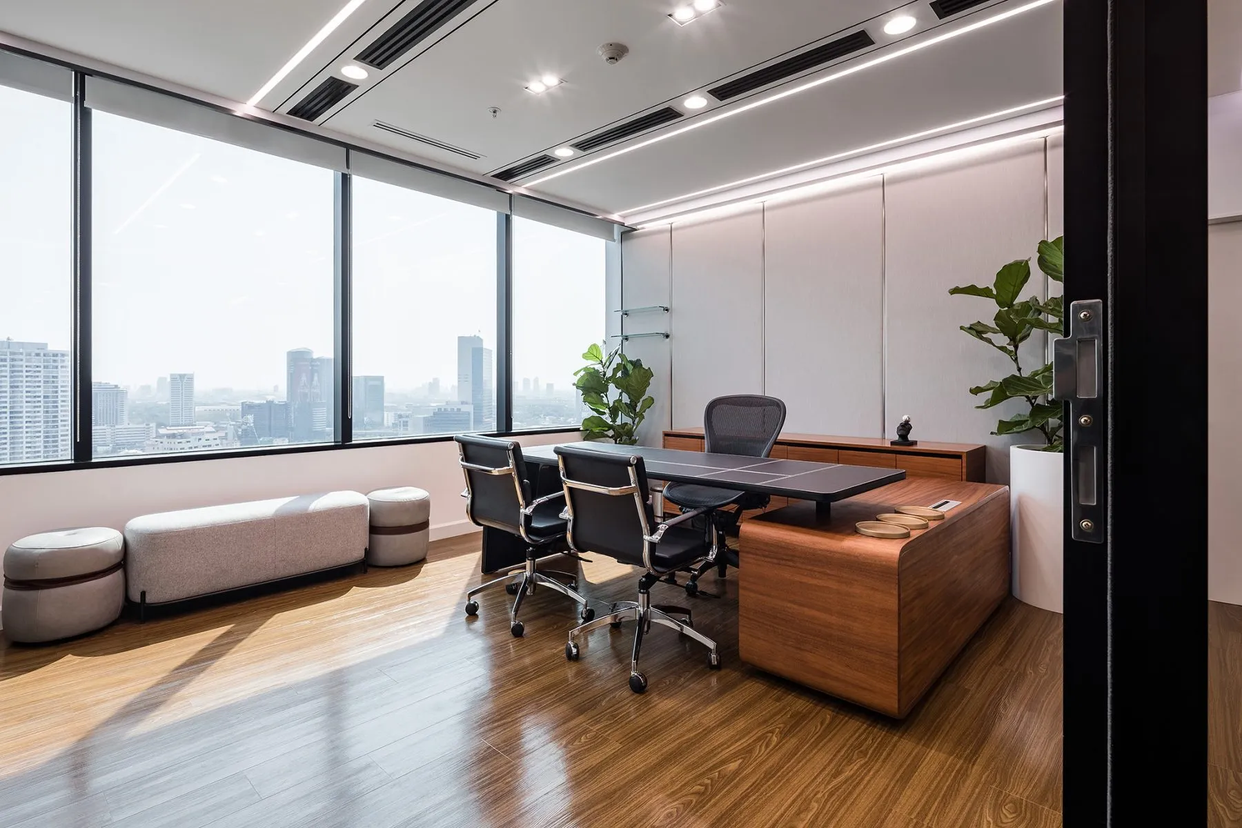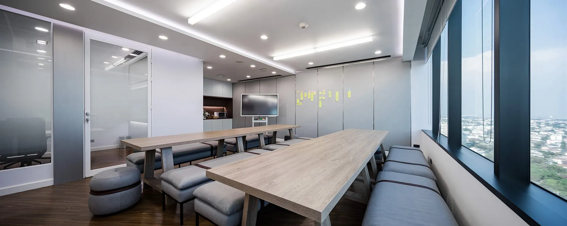 Enclosed by sliding or glass partitions, these spaces accommodate controlled lighting and privacy, supporting concentration during strategy sessions or client presentations.