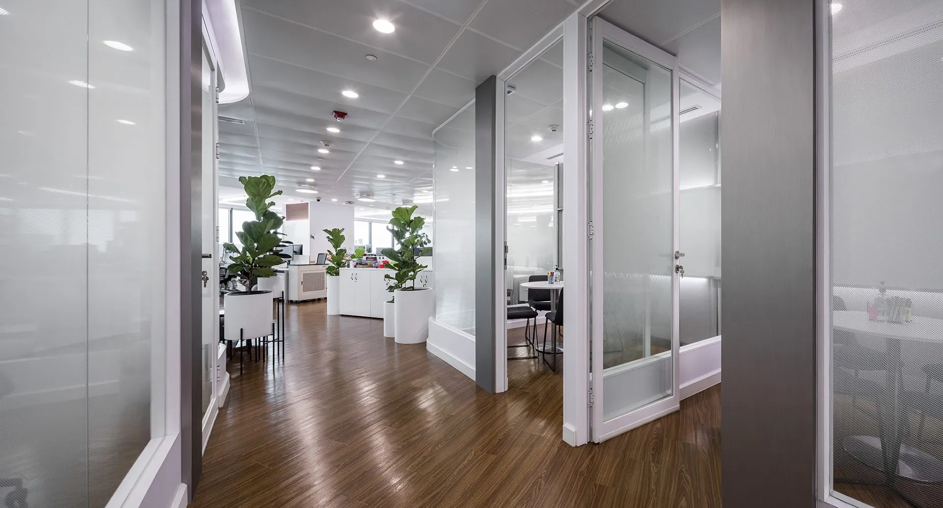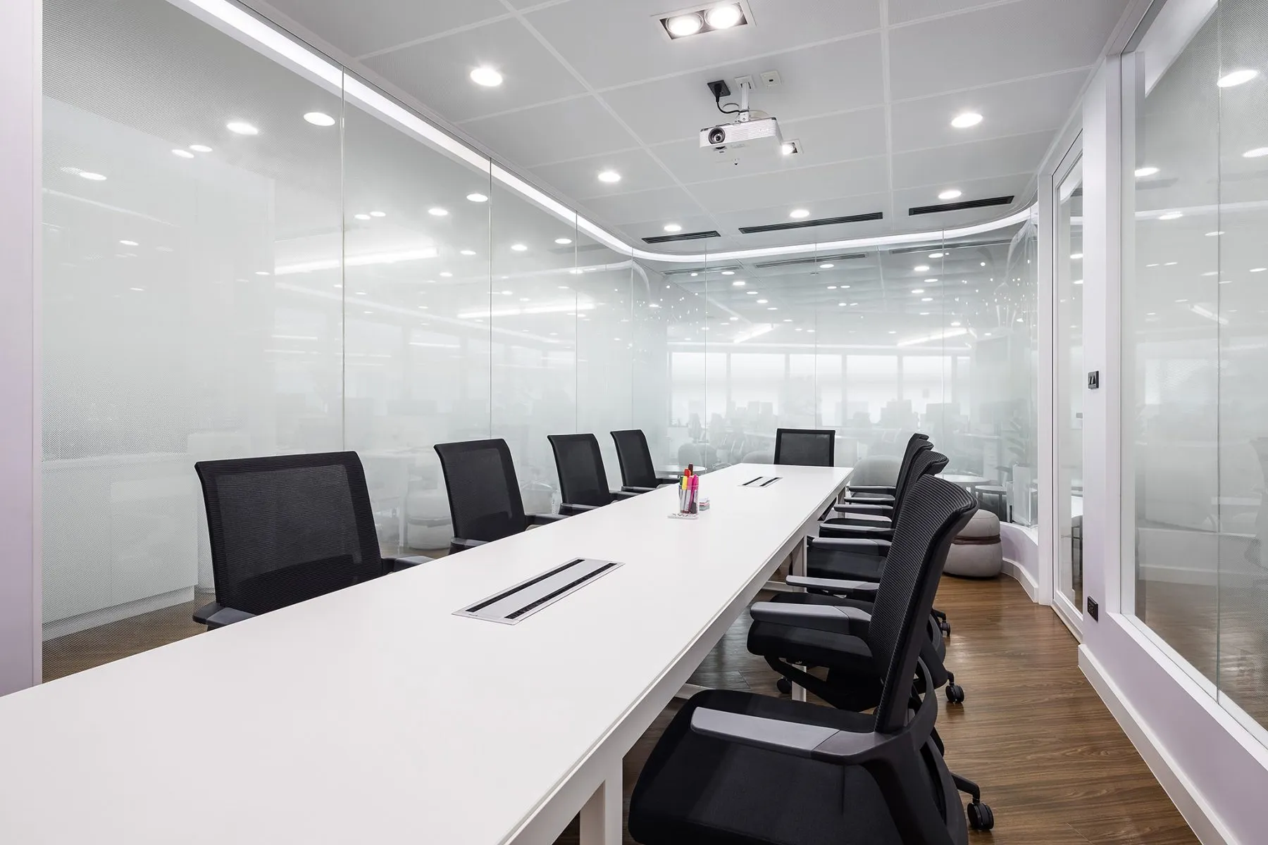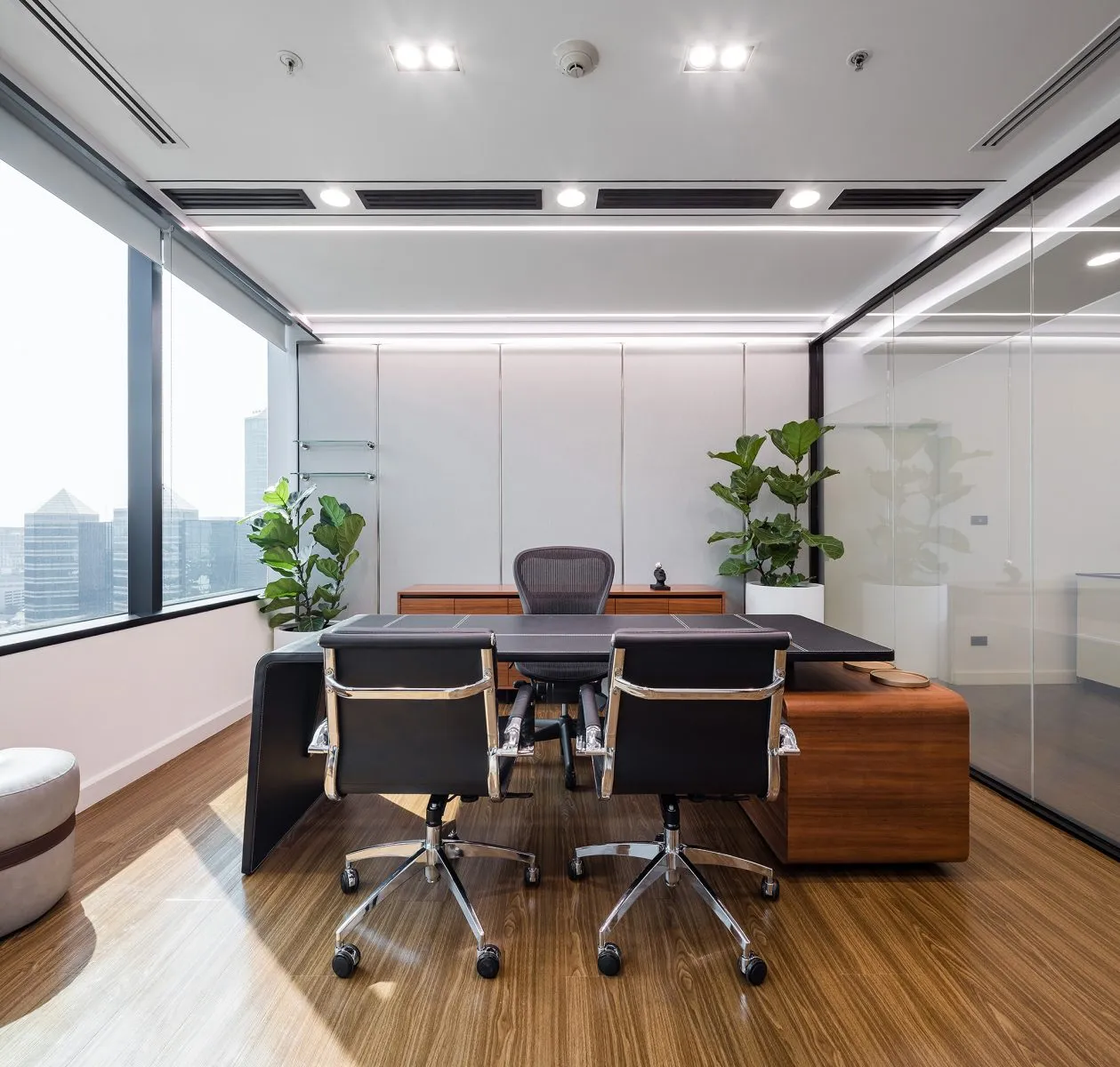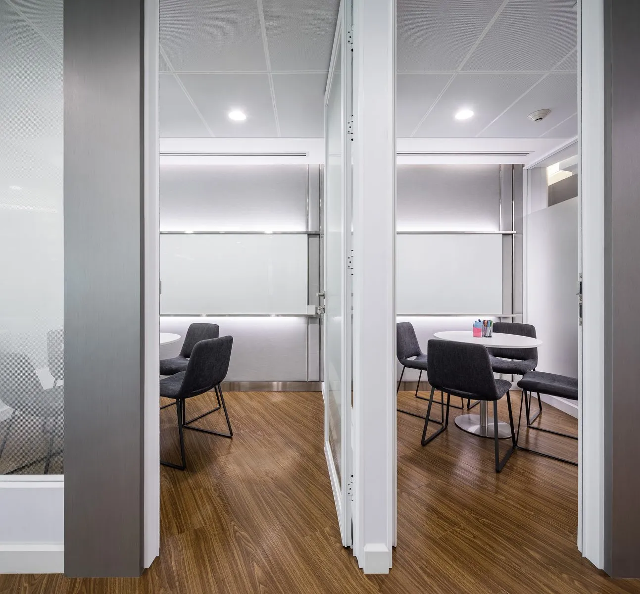 Enclosed by sliding or glass partitions, these spaces accommodate controlled lighting and privacy, supporting concentration during strategy sessions or client presentations.